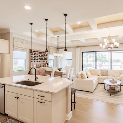 Stunning “Islamorada” WCI-built FURNISHED single family "model home" with pool, extended screened lanai & summer kitchen, all on a premium lake lot. This professionally decorated home is loaded with luxury features and includes open-concept living & a split-bedroom floorplan with 3 bedrooms, 3 full baths, den, laundry room, gourmet kitchen, great room for dining & entertaining & 2 car garage. Myriad upgrades include premium appliances, quartz & stone counters, soft-close cabinetry, wide plank hardwood floors in all main living areas, tray & coffered ceilings w/wood trim & inserts, crown molding, hurricane impact glass windows and doors, upgraded tile, designer lighting fixtures, indoor & outdoor designer furnishings, lovely artwork, accessories, custom window treatments & more. The expanded lanai features upgraded pavers, a summer kitchen w/grill & sink & a fabulous heated pool with sunshelf & waterfall surrounded by lush landscaping and lake views. Arborwood Preserve is located in the popular Treeline corridor, minutes to dining, shopping, airport, outlets, minor league sports complexes & the beautiful gulf coast beaches. Arborwood Preserve's amenities include lovely pools, firepit, theater, tennis, pickleball, card room, game room, fitness center, coffee bar and outdoor bar/dining.