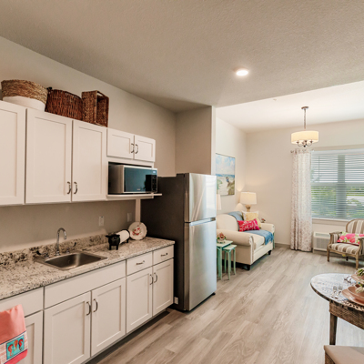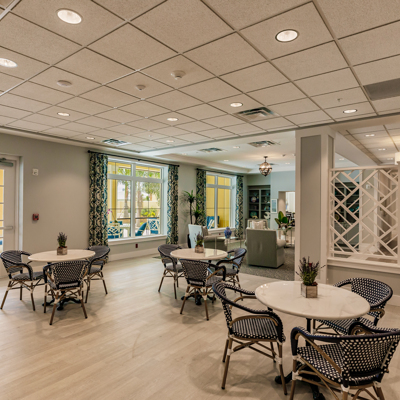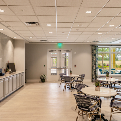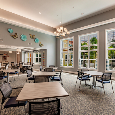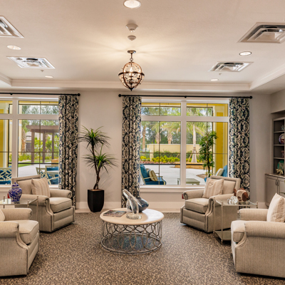 "Sparkling aquamarine mangroves bounce with sunshine and present the idyllic backdrop for our flourishing senior living community. The beachy vibes of the surrounding Cape Coral, FL neighborhood are reflected in our airy senior living community. With top-quality care and restaurant-style dining, our residents have ample opportunity to fill their days with wonderment. Like the gentle palms that sway beyond our door, life at The Waters of Cape Coral is breezy. Offering Assisted Living and Memory Care services near Fort Myers.